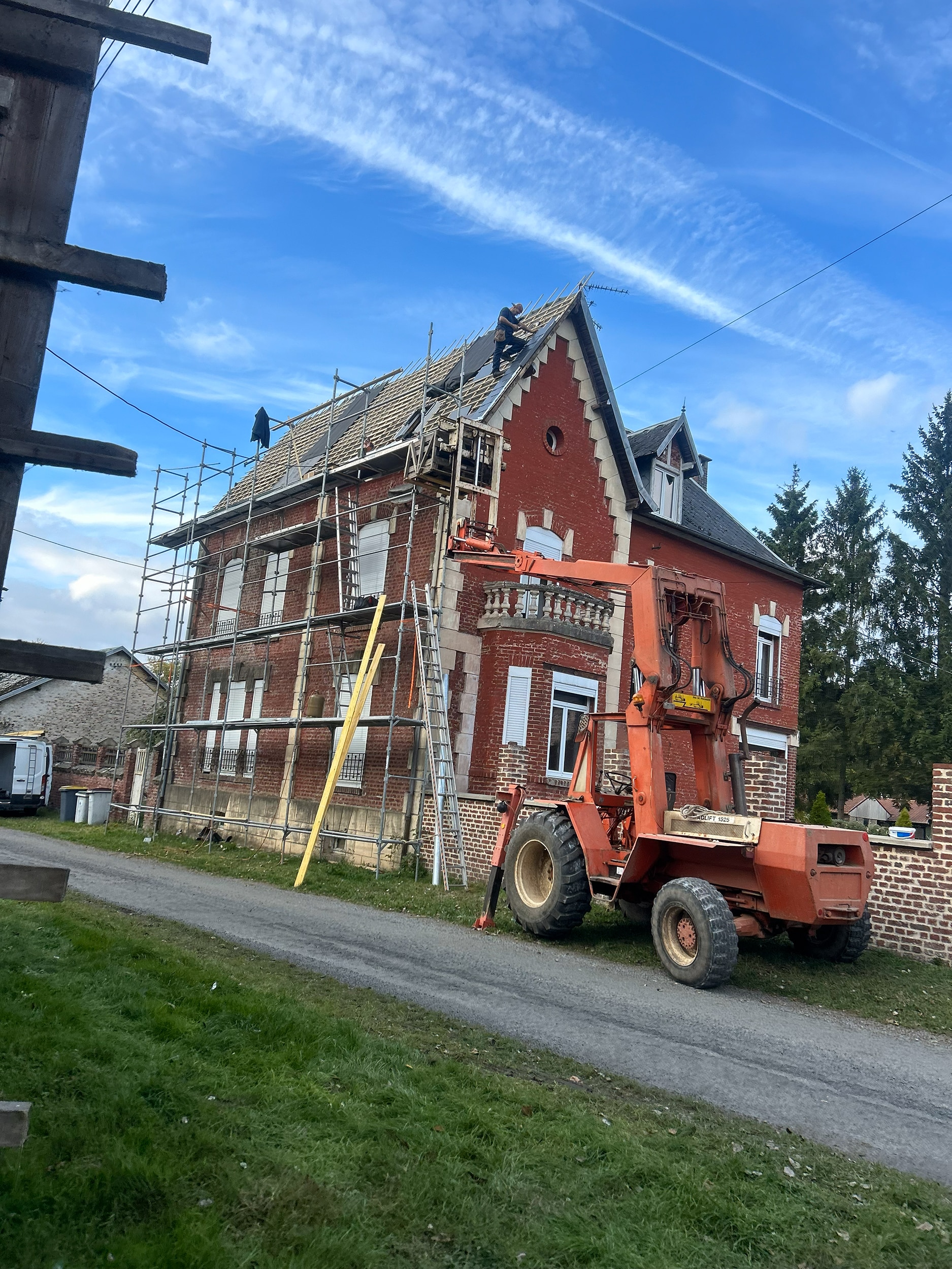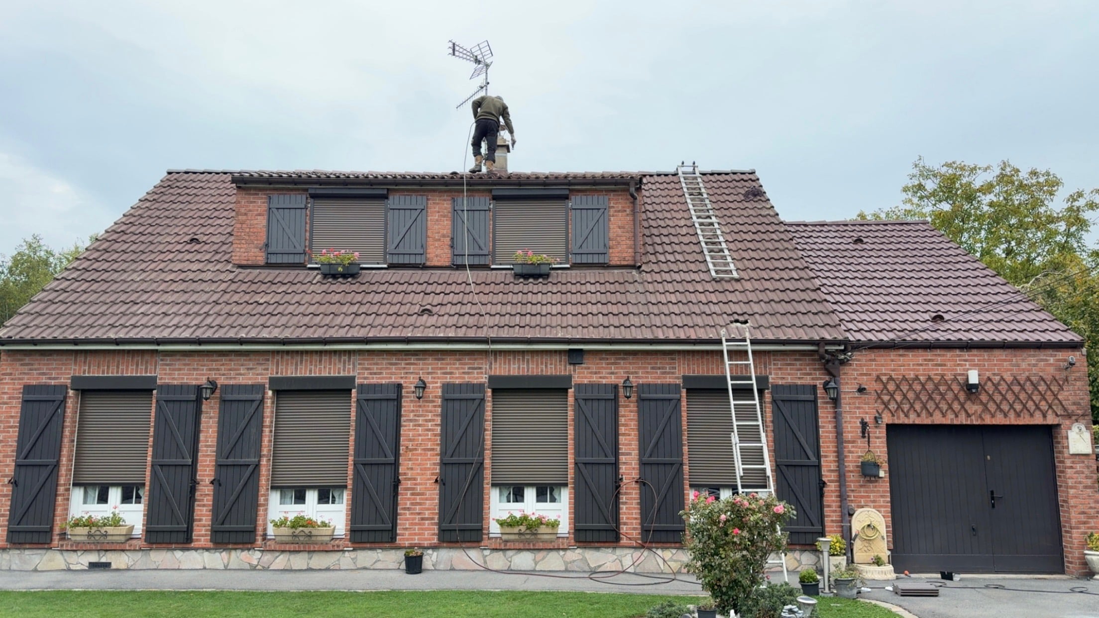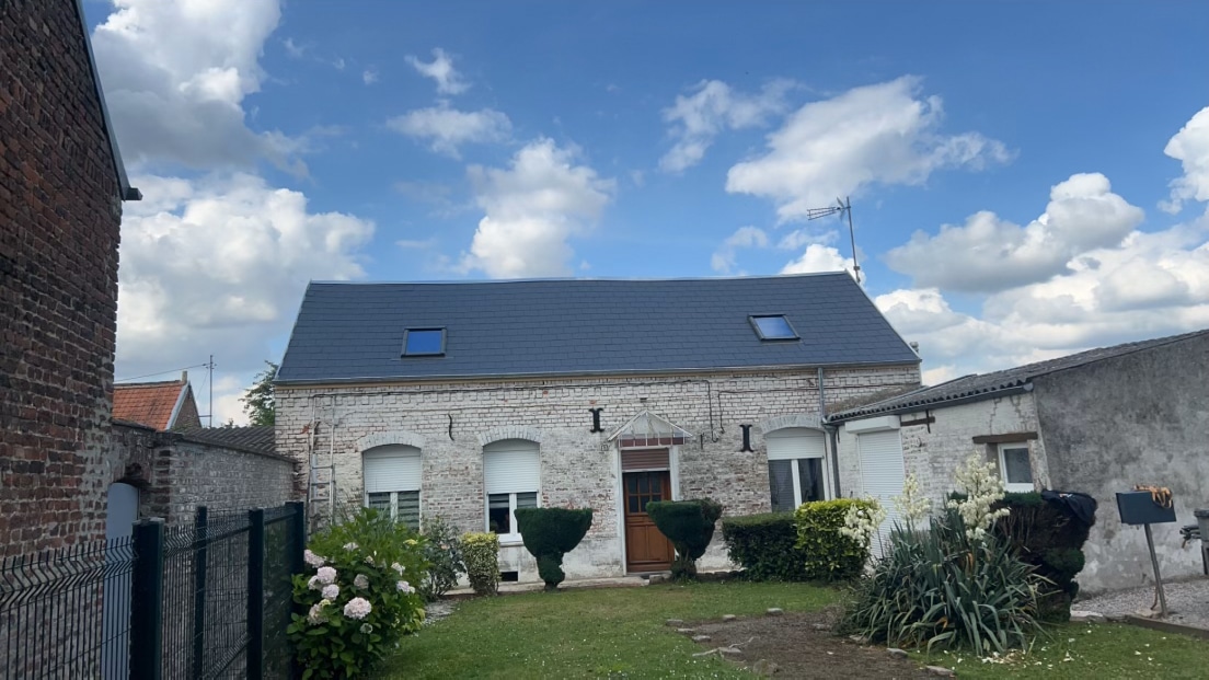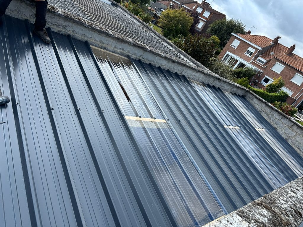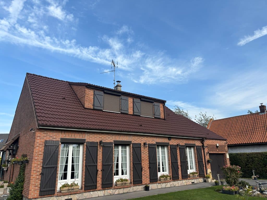 Renov’ Toiture est intervenu pour une rénovation complète de toiture dans la région de Mons, avec nettoyage, remise en état de la couverture et sécurisation de l’ensemble.